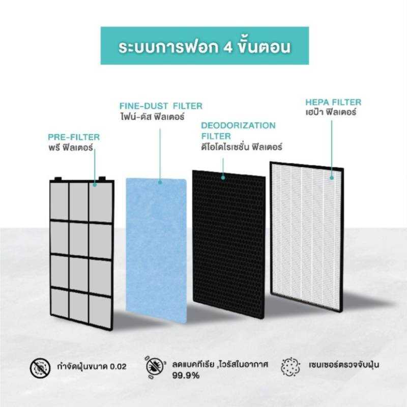 การกรองเต็มประสิทธิภาพ จะช่วยขจัดมลพิษ ได้ถึง 99.9% ความละเอียดการกรองสูงถึง 0.02 ไมครอน